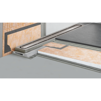 Sloped tray For linear drainage To be installed in wall transition areas, short side Dimensions: (LxB) 200cm x 136cm (H) 39mm (H1) 13mm *Only for use with Schluter KERDI-LINE-G3 grains*