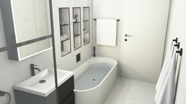 Consider wall-mounted units for a floating effect and better use of space. Explore baths with built-in storage or shower baths for small bathrooms. Wall-mounted fixtures can make a small bathroom feel larger and more open.