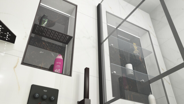 - Walk-In Shower: For a more contemporary look, consider a walk-in shower with a GROHE shower mixer for a seamless, modern aesthetic.